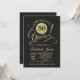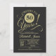 Invitación a la fiesta del 50 aniversario en negro y dorado. Tarjeta de invitación elegante con patrón de pizarra y fuente de escritura tipográfica. ¡Salud por 50 años! Perfecto para una celebración de aniversario dorado cincuenta con estilo.