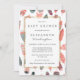 Las plumas bohemias son el patrón de Baby Shower partidista. Estilo boho, tema tribal, ducha de bebé decorada con plumas coloridas y un falso borde dorado.