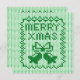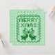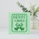 Patrón de tejido verde en un desagradable estilo de suéter con campanas de jingle y texto de Feliz Navidad