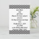 Haz que tu boda o fiesta sea un éxito con esta elegante y moderna invitación con patrón de tablero de ajedrez en blanco y negro.