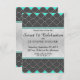 Tarjetas de invitación elegantes de cumpleaños 16 con encaje negro, azul cyan neón y blanco, divertidas y modernas para una fiesta de celebración. Diseño muy clásico y sofisticado para la cumpleañera elegante. Personalice con su propio mensaje y monograma en la parte posterior. Diseño de impresión fotográfica.