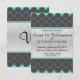 Tarjetas de invitación a la fiesta de celebración de Sweet 16 elegantes de negro, azul neón y blanco, encaje y funky, con patrones geniales. Un diseño muy clásico y sofisticado para la cumpleañera elegante. Personaliza con tu propio mensaje y monograma en la parte posterior. Diseño de impresión de foto personalizable.