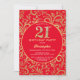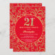 Invitación Patrón floral de oro y rojo de cumpleaños 21
