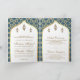 Sorprende a tus invitados con esta invitación de boda plegada al estilo islámico que presenta un elegante patrón geométrico y "Bismillah" en caligrafía árabe con código QR para RSVP en línea. Simplemente agregue los detalles de su evento en esta plantilla fácil de usar para convertirla en una invitación única.