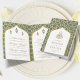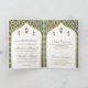 Sorprende a tus invitados con esta invitación de boda plegada al estilo islámico que presenta un elegante patrón geométrico y "Bismillah" en caligrafía árabe con código QR para RSVP en línea. Simplemente agregue los detalles de su evento en esta plantilla fácil de usar para convertirla en una invitación única.