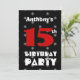 Este diseño contemporáneo con su patrón blanco y negro y su texto grande y audaz es una manera divertida de invitar a la gente a una celebración de 15 años. El texto en la invitación es totalmente personalizable - puede experimentar con diferentes tipos de papel haciendo clic en la ficha "Opciones de invitación" en la esquina superior derecha. Recomiendo este diseño en un papel metálico con caseta de hielo que le da a su invitación un brillo festivo.