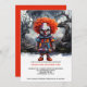 Halloween Scary Clown In Woods Invitaciones personalizadas de Ricaso - diseñadas con un payaso de cabello naranja y colorido parado en una escena adorada a la luz de la luna, mirándote fijamente.