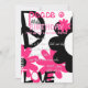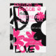 Invitación Paz, amor y Fiesta en rosa caliente y negro