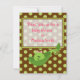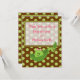 Una adorable guisita en una invitación a la ducha de una niña de bacalao. Un fondo marrón con puntos de polka verdes y texto enmarcado hace de esto una invitación moderna y divertida. Obra vectorial original de la Menagerie de Lechuza Nocturna, 2010.Todos Los Derechos Reservados.
