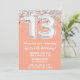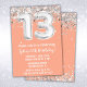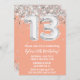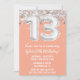 Invitación a la fiesta de cumpleaños número 13, color blanco y plata de color blanco, invitación a la fiesta de cumpleaños número 13, para una plata blanca negra con escritura moderna y globos de Relieve metalizado divertidos.