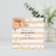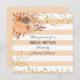 Elegante ducha de boda con rayas de melocotón y blanco y rincón floral. Un toque de hojas de color oro completan esta invitación.