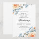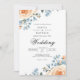 Delicate blooms in peach and soft blue adorn this elegant design, creating a gentle and romantic atmosphere. The artwork evokes a feeling of understated beauty and timeless grace. This design sets a serene and inviting tone for a special occasion.