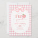 Invitación Peach Dulce de Gingham Rosada Segundo Cumpleaños