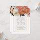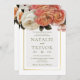 Este bonito diseño floral cuenta con un ramo lleno de melocotón, rosa y flores blancas con un marco dorado. Forma parte de la colección Peach Mimosa Blooms Floral Boda Suite de tarjetas creadas por Simply Farmhouse Press.