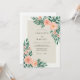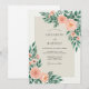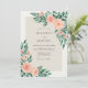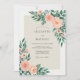 This design features a soft color palette of peach and emerald green, creating a romantic atmosphere. Delicate watercolor roses are paired with lush sage green foliage and petite filler blossoms. The background is a warm cream tone, making it ideal for a spring or summer event. The botanical artwork provides an ethereal and elegant feel for a sophisticated ceremony.