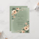 Delicate peach blossoms and leafy greenery adorn this serene design. The artwork evokes a gentle, romantic atmosphere with its soft color palette and painterly style. This motif is perfect for a dreamy, elegant occasion.