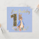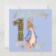 Invitación Pedro el conejo con texto de primer cumpleaños en
