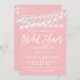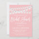 Esta elegante y sencilla invitación a la fiesta Bridal Shower es perfecta para un evento moderno de temática rural. Cuenta con lámparas de cuerda colgantes de tarro de masón con brillo blanco encima de un fondo rosado con encanto ondulante con tipografía de escritura de pincel equivalente. Es elegante, bonito, minimalista y de moda, perfecto para su día especial. ***NOTA DE DISEÑO IMPORTANTE: Para cualquier solicitud de diseño personalizado, como solicitudes de productos coincidentes, cambios de color, cambios de posición o cualquier otra solicitud de cambio, haga clic en el botón "MENSAJE" o envíe un correo electrónico al diseñador directamente a lafemme.art@gmail.com. Incluso puede enviarle un correo electrónico solicitando un diseño completamente personalizado y nuevo.