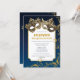 Invite a sus invitados a una glamorosa pelota de máscaras de Halloween con esta impresionante invitación. Con máscaras de oro, un fondo de bokeh y remolinos de purpurinas de oro, marca el tono perfecto para un evento elegante y misterioso.