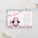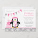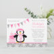 Invitación Penguin Snowflakes Invierno Rosa Onederland Cumple