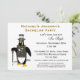 Retira el apóstrofo extra, al escribir el primer nombre, oops. Cuando el estilo y la elegancia superan a la ocasión, este pingüino de dibujos animados está listo con su chaleco y corbatín de esmoquin de moda, sombrero de copa negro, llevando un bastón y usando un monóculo. Haz saber a tus invitados que esta celebración para el novio es un asunto más formal que una fiesta de cerveza, y un traje o un esmoquin es la moda para la noche. Nota - no debe haber apóstrofo en el primer nombre - ajustalo en tu texto. Simplemente llena la información personalizada según sea necesario. Hay una línea adicional proporcionada para cualquier información de la fiesta y/o moda que sea útil, o elimina esa línea si no es necesaria. Nota: otra sugerencia para el texto, Let's Send Him Off in Style, podría ser Let's Celebrate In Style, escrito en las mismas líneas divididas, si se ajusta mejor a la ocasión. Utiliza el bloque de color cuadrado para