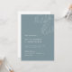 Esta exquisita invitación capta la esencia de su día especial con sus líneas depuradas, su sofisticada tipografía y sus sutiles bocetos de hojas tropicales. El profundo matiz polvoriento marca la pauta para una celebración fresca e invitante. Ya sea que esté planeando una ceremonia frente a la playa o simplemente quiera infundir un toque de encanto costero a su boda, este diseño es el epítome de la belleza eterna. Los bocetos con hojas tropicales mínimas le dan un toque de elegancia a la naturaleza, al tiempo que permiten a sus bodas tomar el escenario central. No sólo este diseño de invitación tiene un impresionante color azul, sino que también ofrece una amplia gama de opciones de color personalizable. Puede elegir entre una paleta de colores que se adapte a su tema boda y estilo personal, asegurándose de que sus invitaciones reflejen perfectamente su visión. Que la Invitación a la Boda de Pensacola sea el mensajero de tu historia de amor. Su elegancia sobria y su encanto tropical marcarán el tono para una celebración verdaderamente memorable. Prepárate para cautivar a tus invitados desde el momento en que reciban esta hermosa invitación.