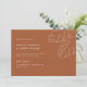 Esta exquisita invitación capta la esencia de su día especial con sus líneas depuradas, su sofisticada tipografía y sus sutiles bocetos de hojas tropicales. El rico tono de bronce o naranja quemado marca la pauta para una celebración cálida e invitante. Ya sea que esté planeando una ceremonia frente a la playa o simplemente quiera infundir un toque de encanto costero a su boda, este diseño es el epítome de la belleza eterna. Los bocetos con hojas tropicales mínimas le dan un toque de elegancia a la naturaleza, al tiempo que permiten a sus bodas tomar el escenario central. Este diseño de invitación no sólo tiene un impresionante color bronce o naranja quemado, sino que también ofrece una amplia gama de opciones de color de personalizable. Puede elegir entre una paleta de colores que se adapte a su tema boda y estilo personal, asegurándose de que sus invitaciones reflejen perfectamente su visión. Que la Invitación a la Boda de Pensacola sea el mensajero de tu historia de amor. Su elegancia sobria y su encanto tropical marcarán el tono para una celebración verdaderamente memorable. Prepárate para cautivar a tus invitados desde el momento en que reciban esta hermosa invitación.