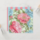 Ilustración romántica de peonías taiwanesas en rosa pastel, azul y verde menta