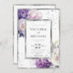 Hermosa acuarela púrpura y peonías blancas con salpicaduras de verduras mezcladas y de plata falsa. El marco rústico de plata falsa crea una elegante y pintoresca invitación a la boda para cualquier boda de temporada. Elegancia en su mejor momento. Perfecto para su evento. 100% de satisfacción del cliente con Zazzle cada día.