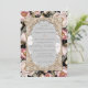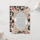 Diseño vertical rectangular de 5" x 7". Elegante marco vintage dorado esmaltado de aspecto tridimensional sobre un pálido color rosa pastel Peony floral con vegetación foliage de hojas cálidas y mudas y un rico fondo negro de carbón vegetal con un patrón floral a juego en el reverso. En la colección se puede adquirir un conjunto completo de productos. MSP0101