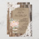Invitación Peony Floral Bouquet Wood Lace Rústico Boda