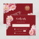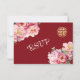 Flores de peonía acuarela sobre un fondo rojo marrón. Tarjeta de Boda china RSVP.