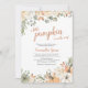 Celebra tu pequeña en el camino con esta invitación de Baby Shower de la calabaza pequeña, bellamente rústica. Con sus encantadoras calabazas naranja, blancas y verdes en la parte inferior, acentuadas con elegantes rosas blancas y una suave vegetación, este diseño combina perfectamente las acogedoras vibraciones otoñales con el encanto atemporal. En la parte superior del cuadro se encuentran otras rosas blancas y acentos frondosos que invitan a un acabado floral equilibrado. Con sus tonos neutros y sus elementos naturales, esta invitación es ideal para las duchas de bebé neutrales en género durante la temporada de otoño. BBS473