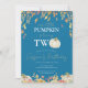 ¿Estás buscando una invitación de cumpleaños con temática de otoño que sea justo lo correcto? ¡Aquí lo encontrarás. Esta encantadora invitación muestra las extravagantes hojas de acuarela y calabazas con un fondo azul otoñal.