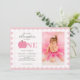 Invitación Pequeña Calabaza Cae Pastel Rosa Primer Día Foto