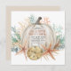 La invitación para el cumpleaños de los niños "Our Lil Pumpkin" incluye una calabaza acuática rodeada de estrellas de mar y conchas de dólares de arena, coral y vegetación de palmeras y eucaliptos. Perfecto para celebraciones temáticas de otoño y playa con colores de otoño que funcionan bien para un chica o un niño.