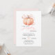 Esta elegante y encantadora ducha de bebé cuenta con un hermoso ilustracion acuático de una calabaza con una delicada cinta rosa, ideal para celebrar la llegada de un pequeño en la temporada de otoño. Para la versión actualizada, compruebe la otra versión de esta invitación.
