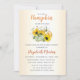 Invite a los clientes de la ducha de bebé con estilo con esta tarjeta de imitación temática A Little Pumpkin is the Way. Este bonito diseño presenta calabazas acuáticas pintadas a mano con girasoles amarillos. Personalice todos los detalles de su fiesta. Diseñado por la artista Susan Coffey.