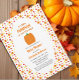 Pequeña invitación de calabaza para una ducha de bebé con hojas de arce y roble en los colores de la cosecha de otoño.