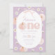 Invitación Pequeña Calabaza Primer Cumpleaños Daisies Morado