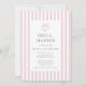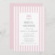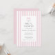 Una elegante invitación a la ducha de novia con franjas verticales de color rosa suave y un delicado arco en la parte superior. El diseño minimalista y limpio, combinado con la tipografía moderna, crea una estética moda y femenina, perfecta para celebrar a la futura novia en un estilo atemporal.