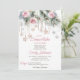 Pequeño copo de nieve está en camino de la ducha de bebé de invierno color agua rosa pastel y pinos grises rosa rubor rosa copos de nieve dorado con cristales bebé plantilla editable invitación descarga digital instantánea para ducha de bebé con temática invernal maravilla de bebé ducha de invierno