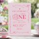 Pequeña novia dibujada a mano en color rosa invitando a un cumpleaños