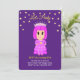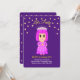 Pequeña princesa adorable vestida con confeti rosa magenta y estrella en la invitación al cumpleaños púrpura real. ¡Ideal para un fiesta mágico! ¡La vida es un viaje mágico!