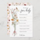 ¿Estás buscando un tema hermoso para el baby shower de una futura mamá? Echa un vistazo a esta Tarjeta de deseos y consejos para el baby shower de Wildflower. Cuenta con un hermoso ramo de flores silvestres en acuarela sobre un fondo blanco. En la parte posterior, encontrarás un patrón floral lindo con un fondo rosa. Pero puedes cambiar el color de fondo en la herramienta de diseño. Puedes agregar tus propios detalles muy fácilmente utilizando los campos de la plantilla. Tenemos toda una colección de artículos y suministros para fiestas que coinciden con este maravilloso tema de flores silvestres con diferentes opciones para invitaciones. Puedes verlos debajo del producto (Haz clic en el enlace debajo del encabezado "Otros productos en esta colección"). ¡Feliz personalización y que tengas una gran fiesta!
