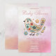 Invitación Pequeño Bird Floral Embroidery Baby Shower Rosa