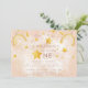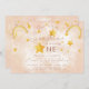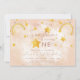 Invitación bohemio arcoíris para el primer cumpleaños en rosa suave, polvo mágico y estrellas doradas brillantes. Haga clic en el botón "personalizar más" si desea reorganizar y dar formato al estilo y ubicación del texto.