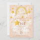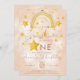 Invitación bohemio arcoíris para el primer cumpleaños en rosa suave, polvo mágico y estrellas doradas brillantes. Haga clic en el botón "personalizar más" si desea reorganizar y dar formato al estilo y la ubicación del texto.