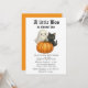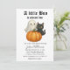 ¡Celebra la próxima llegada de tu calabaza con esta adorable invitación a bañarse con la temática de Halloween! Con un lindo gato negro, calabazas acuarelas, hojas de otoño y tipografías espeluznantes, este diseño de "Little Boo is Casi Due" es perfecto para una ducha de bebé con un toque lúdico y acogedor. Ideal para las madres que esperan que les guste Halloween, esta invitación establece el ambiente perfecto para una reunión festiva. Personalizable completo con los detalles de la ducha y la información de RSVP.