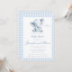 Adorable invitación a una ducha para bebés con un encantador ilustracion azul acuático de un lindo elefante bebé con corbata azul en un fondo de color gingham. Ideal para las duchas de niños, celebraciones con temática de "cacahuete".